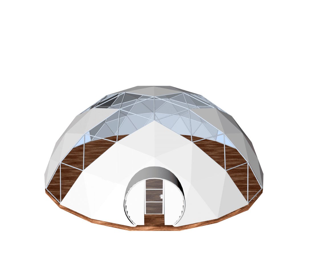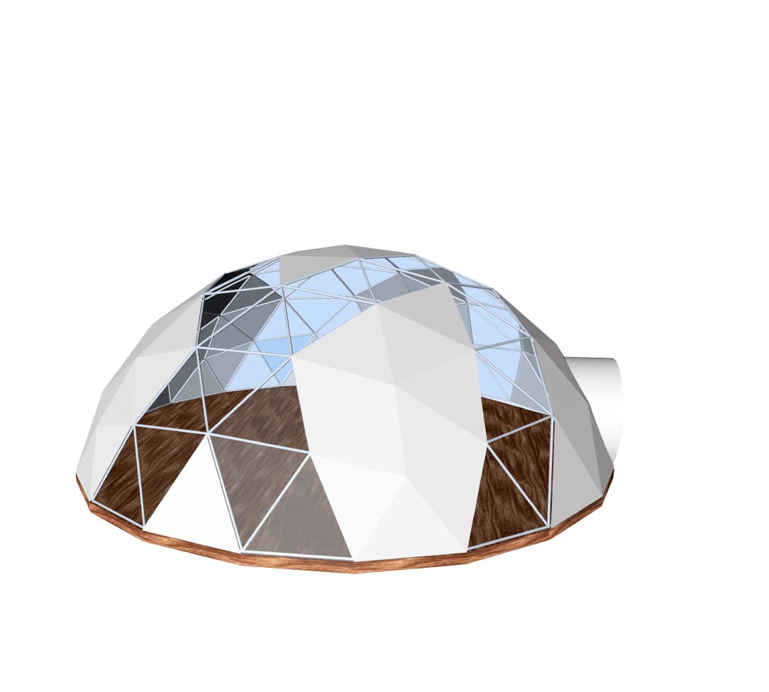 Оболочка из архитектурной ПВХ-ткани DICKSON/LAC, плотность 640 гр/м2, антигрибковая обработка. Цвета RAL. Окно выполнено из прозрачной ПВХ-пленки. В стоимость входит дверной проём круглой формы.