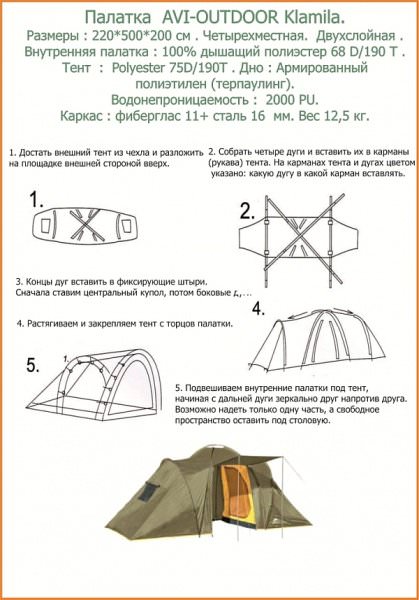 Палатка AVI-OUTDOOR Klamila для семейного кемпинга.