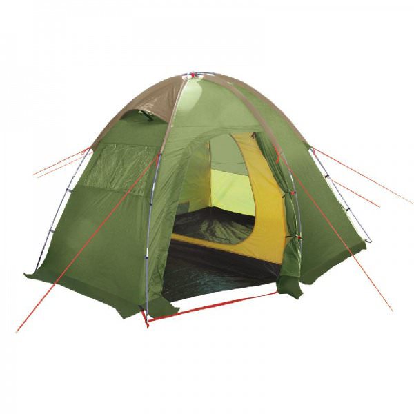 Внешний тент палатки устойчив к ультрафиолетовому излучению и имеет пропитку, задерживающую распространение огня. Тент палатки оборудован юбкой.