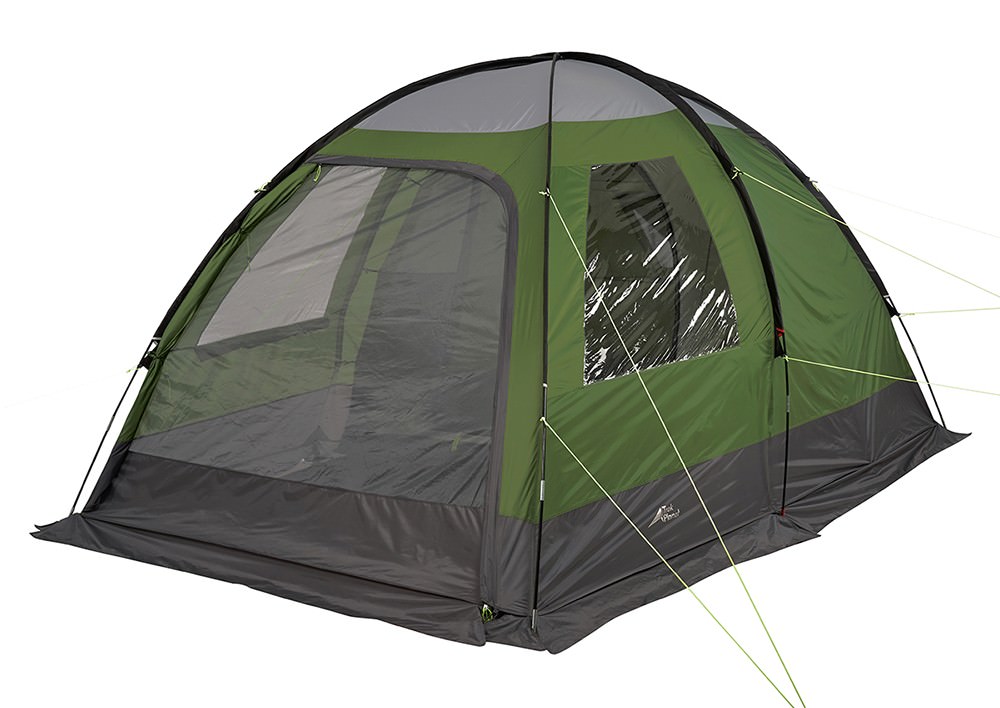 У палатки хорошая вентиляция благодаря москитной сетке на входе в тамбур в полный размер двери и трехпозиционному большому вентиляционному окну на задней стенке палатки. Конструкция из трех перекрещивающихся дуг обеспечивает максимальную ветроустойчивость. А материал внешнего тента с водостойкостью 4000 мм надежно защищает от дождя. По всему периметру палатки сделана юбка для защиты от ветра, дождя и насекомых.